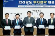 [참좋은뉴스= 기자] 전라남도는 26일 동부청사에서 여수그린에너지㈜, ㈜한화 글로벌부문, ㈜LX MMA 등과 1조 2천441억 원, 고용 창출 147명 규모의 투자협약을 했다. 협약식에는 김영록 전남도지사와 한상훈 여수그린에너지㈜ 대표이사, 김태욱 ㈜한화 글로벌부문 머티어리얼(Material)사업부장, 김창호 ㈜엘엑스 엠엠에이(LX MMA) 공장장, 정기명 여수시장 등이 참석했다. 전남도는 이번 투자가 여수국가산단의 범용 석유화학 소재 중심 산업구조를 친환경·바이오·고부가가치 산업으로 전환하는 첫걸음이 될 것으로 기대하고 있다. 또한 대규모 설비 투자에 따라 건설·물류·서비스업 등으로 고용이 확대돼 지역 고용 안정에도 도움이 될 전망이다. 투자협약에 따라 여수그린에너지는 1조 원을 투자해 여수산단 입주 기업에 전력·스팀을 안정적으로 공급하기 위한 LNG 복합화력발전소를 건설한다. 스팀과 전력을 동시에 생산해 에너지 이용 효율을 높이고, 석탄화력발전 대체를 통한 친환경에너지 정책에도 기여하겠다는 계획이다. 한화 글로벌부문은 바이오의약품 제조 공정에 필수적으로 사용되는 완충용액의 핵심 원료인 고순도