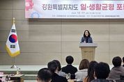 [참좋은뉴스= 기자] 강원특별자치도는 12월 17일 강원특별자치도와 강원특별자치도경제진흥원이 공동 주최하고, 강원특별자치도여성가족연구원과 강원여성새로일하기센터가 주관하여 강원특별자치도여성가족연구원 1층 강당에서 '강원특별자치도 일·생활균형 포럼'을 개최했다. 이번 포럼은 여성의 경력단절을 예방하고, 저출산 및 지역소멸 극복을 위해 지역사회 전반에 일·생활 균형 문화를 확산하기 위한 담론장으로 마련됐다. 포럼에서는 '강원특별자치도 일·생활균형 실태조사' 결과를 공유하고, 행정·기업·노동·지역 현장 등 다양한 주체가 참여한 토론을 통해 강원지역의 여건을 반영한 정책 방향과 실행 과제가 논의됐다. 좌장은 정구연 교수가 맡았다. 토론에는 박관희 강원특별자치도의원, 이지영 강원교통방송 편성국장, 남미영 한국여성경제인협회 강원지회 명예회장, 김재중 한국노동조합총연맹 강원도지역본부 의장, 박옥희 엔씨스마트컨설팅 대표(가족친화인증 평가위원), 윤수경 강원광역여성새로일하기센터 센터장, 유효숙 강원특별자치도 여성청소년가족과 팀장이 참여해 분야별 현장 경험과 제도 개선 의견을 공유했다. 정영미 강원특별자치도 복지보건