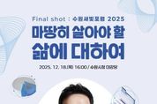 [참좋은뉴스= 기자] 전직 코미디언인 고명환 작가가 12월 18일 오후 4시 시청 대강당에서 열리는 제174회 수원새빛포럼 강사로 나선다. 고명환 작가는 ‘마땅히 살아야 할 삶에 대하여’를 주제로 강연한다. 남과 비교하며 타인이 정해준 기준에 맞춰 살아갈 때 마주하는 상실감을 짚고, 자신을 먼저 돌아보는 태도가 행복으로 가는 출발점이 될 수 있다는 메시지를 전할 예정이다. 또 한 해를 정리하는 시점에서 삶의 방향을 점검하고 단단한 내면으로 나아가는 방법 등도 이야기한다. 고명환 작가는 1994년 대학개그제 금상을 받으며 데뷔, 2000년대 코미디언으로 활동했다. 2005년 교통사고 이후 뮤지컬 배우, 요식업, 집필 등 다양한 분야에 도전해 왔다. 2017년 자기계발서 집필을 계기로 작가 활동을 본격화했다. '나는 어떻게 삶의 해답을 찾는가' 등을 펴냈고, 유튜브 채널 ‘고명환TV’를 운영하고 있다. 제11회 교보문고 출판 어워즈 ‘올해의 작가’에 이름을 올렸다. 수원새빛포럼 참여를 원하는 시민은 별도 신청 없이 포럼 당일 수원시청 대강당을 찾으면 된다. 수원새빛포럼은 사회 각 분야 명