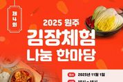 [참좋은뉴스= 기자] (사)원주시농촌체험휴양마을협의회가 주관하는 2025년 제4회 김장체험·나눔 한마당 행사가 오는 11월 1일, 호저면 섬강매향골체험휴양마을에서 개최된다. 올해로 4회째를 맞은 이번 행사는 각 가정의 김장비용 부담을 덜고, 우리 지역에서 갓 수확한 신선한 재료로 건강한 김치를 직접 담그는 특별한 경험을 제공하기 위해 마련됐다. 참가비는 가족당 85,000원이다. 총 11㎏의 김장김치를 담그며, 그중 1㎏은 지역 내 어려운 이웃에 기부해 나눔의 의미를 더할 예정이다. 협의회 관계자는 “깊어지는 가을, 온 가족이 함께 김치를 만들며 즐거운 추억을 쌓고 우리 주변의 이웃과 따뜻한 마음을 나누는 뜻깊은 시간이 되길 바란다”라며, “시민 여러분의 많은 관심과 참여를 부탁드린다”라고 말했다. [뉴스출처 : 강원도 원주시]