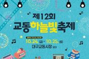 [참좋은뉴스= 기자] 대구 중구는 오는 10월 24일과 25일 양일간 교동 전자골목일원 및 교동공영주차장 앞 특설무대에서 ‘제12회 교동 하늘빛 축제’를 개최한다고 밝혔다. 올해로 12회를 맞은 이번 축제는 교동시장에 활력을 불어넣고, 지역민과 관광객이 함께 즐길 수 있는 문화 축제로 교동시장활성화구역상인회가 주최·주관하고 대구 중구청, 중소벤처기업부, 소상공인시장진흥공단이 후원한다. 세대와 세대를 잇는 소통형 시장축제로 기획되어, 개막행사를 비롯해 가요제, 특별공연, 체험행사, 플리마켓 등 다채로운 프로그램이 마련되는 이번 축제는 전통과 현대가 공존하는 교동만의 매력을 선보일 예정이다. 10월 24일 오후 4시 30분 교동공영주차장 앞 특설무대에서 진행되는 개막식에서는 식전공연(나현진), 표창장 수여, 구청장 축사, 축하공연(카운트다운) 등이 이어져 축제의 열기를 더할 예정이다. 축제 기간 동안에는 교동상인 노래자랑, 거리 노래방 등 시민 참여형 가요제와, DJ 파티(교동 나이트), 보이는 라디오, 특별공연(어쿠스틱팔레트, 나연) 등이 진행되어 현장을 찾는 관람객들에게 다채로운 볼거리와 즐길거리