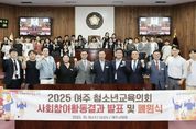 [참좋은뉴스= 기자] 경기도여주교육지원청은 10월 15일, 여주시의회 본회의장에서 '2025 여주 청소년교육의회 발표회 및 폐원식'을 개최했다. 이번 행사는 지난 6개월 동안 여주 청소년들이 직접 기획·참여한 사회참여활동 결과를 공유하고, 의정활동을 마무리하는 자리로 마련됐다. 이날 행사에는 김상성 교육장을 비롯해 박두형 여주시의회 의장과 여섯 명의 시의원, 청소년교육의회 의원 36명 및 학부모가 참석해 청소년들의 성장과 노력을 함께 축하했다. 여주교육지원청 김상성 교육장은 격려사에서 “청소년의 목소리가 지역사회를 변화시키는 힘이 된다”며 “여러분의 작은 실천이 여주의 미래를 밝히는 등불이 되기를 바란다”고 전했다. 또한 박두형 여주시의회 의장은 “여주시의회도 여러분의 제안을 귀 기울여 듣고, 청소년이 행복한 도시를 만드는 데 함께하겠다”고 격려했다. 이날 발표회에서는 청소년의회 5개 상임위원회(환경·복지·인성·시설·교육)가 각 분과별로 진행한 사회참여활동과 정책제안서를 공유했다. 환경위원회는 ‘지속 가능한 여주를 위한 생활 속 실천 방안’을, 복지위원회는 ‘보행자 안전을