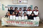 [참좋은뉴스= 기자] 김해시는 진례면 화전마을이 지난 30일 ‘실버케어 상담사 전문가 과정반’ 수료식을 개최했다고 밝혔다. ‘실버케어 상담사 전문가 과정반’은 화전마을 주민이 주축이 되어 취약계층을 대상으로 전문 노인케어 상담 서비스를 제공하기 위해 상담 역량을 향상시키는 교육으로 ▲노인상담 기초, ▲노인문제와 상담, ▲미술치료 등 총 8회차로 구성하여 8월부터 추진됐으며, 교육생 10명 모두 실버케어 상담사 자격증을 취득했다. 특히 자격증을 취득한 주민들은 진례면 농촌마을의 취약계층 돌봄을 위해 화전돌보미 자체활동반으로 활동하며 주민 중심 맞춤형 돌봄 네트워크를 구축할 계획이다. 교육 수료생인 화전마을 배점남 주민은 “이번 교육을 통해 주민들과 함께 나를 알아가고, 서로 알아가는 시간을 보내면서 마음에 있는 이야기를 꺼내니 그간 쌓인 답답한 마음이 풀리는 기분이었다”라며, “이번 실버케어 상담사 교육을 통해 배운 기술을 바탕으로 돌봄 활동을 진행하여 우리 주민들이 요양원에 가지 않고 집에서 건강한 노후를 보낼 수 있도록 열심히 참여하겠다”고 말했다. 한편, 진례면 화전마을은 30년 이상 노후주
