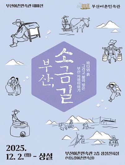 [참좋은뉴스= 기자] 부산해양자연사박물관은 오는 12월 2일부터 분관인 부산어촌민속관(북구 학사로 128) 2층 낙동강어촌민속실에서 2025년 테마전 '부산, 소금길'을 개최한다고 밝혔다.