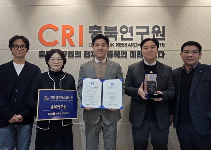 [참좋은뉴스= 기자] 충북연구원(원장 김영배, 이하 연구원)은 최근 공공기관의 인권 존중 경영 실천을 강화하기 위해 추진한 인권경영시스템 인증을 공식 획득했다.