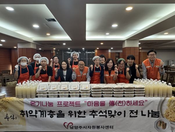 [참좋은뉴스= 기자] 남양주시자원봉사센터는 추석맞이 집중 주간을 맞이하여 9월 25일부터 오는 10월 3일까지 약 1,300명의 관내 취약계층을 대상으로 ‘추석맞이 전 나눔 활동’을 펼쳤다.