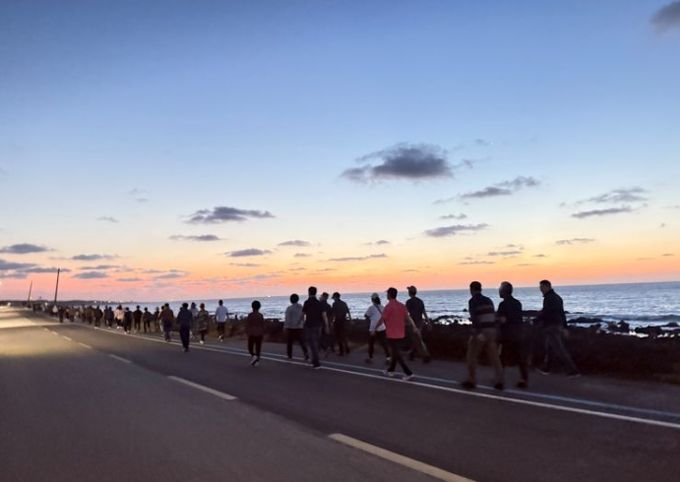 [참좋은뉴스= 기자] 서귀포시는 일상생활 속 1일 7천 보 걷기 활성화를 위하여 11일 새벽 5시 신산리 마을주민들과 함께하는 '힐링 UP! 혼디모영 걸을락(樂)' 신산마을걷기를 운영했다.