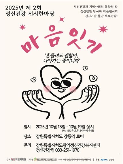 '정신건강 전시한마당'은 지난해 춘천에서 처음 개최되어 큰 호응을 얻은 바 있으며, 올해는 강릉에서 열려 더 많은 도민들이 예술 작품을 통해 정신건강의 중요성을 이해하고 공감할 수 있도록 마련됐다.