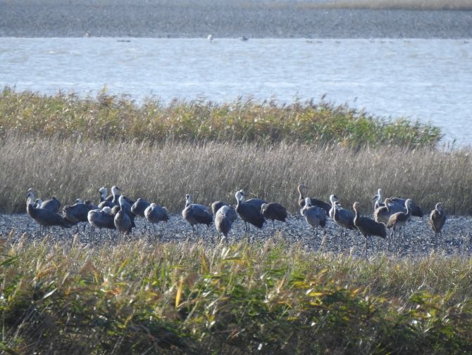 앞서 지난 20일 순천만 상공을 선회했던 흑두루미 9마리는 남하해 21일 일본 이즈미에 도착한 것으로 확인됐다.
