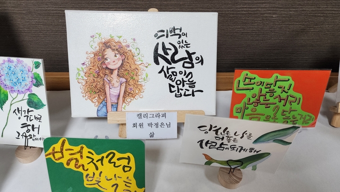 현재 문화센터 회원 13명이 참여해 민화 10점과 캘리그라피 42점 등 총 52점의 작품이 전시되고 있으며, 전시 기간은 오는 12월 4일까지이다.