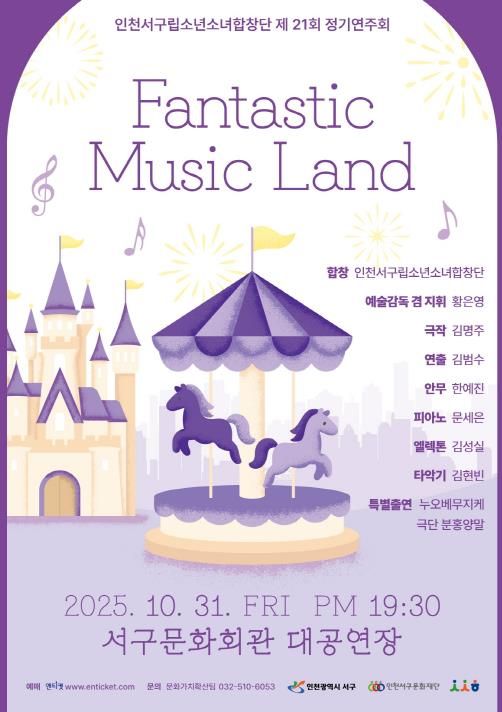 [참좋은뉴스= 기자] 인천서구립소년소녀합창단이 오는 10월 31일 오후 7시 30분, 서구문화회관 대공연장에서 제21회 정기연주회 ‘Fantastic Music Land’를 개최한다.