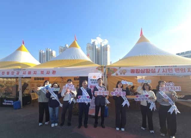 [참좋은뉴스= 기자] 김해시 농업정책과는 10월 31일 제41회 진영단감축제 행사장에서 농업정책과 직원들이 참여한 가운데 “찾아가는 청렴실천 캠페인”을 전개했다고 밝혔다.