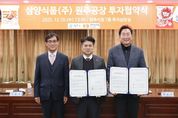 [참좋은뉴스= 기자] 원주시는 10일 오후 1시 30분, 시청 7층 투자상담실에서 지역의 대표 향토기업인 삼양식품㈜와 액상스프 공장 신설 투자를 위한 협약(MOU)을 체결했다. 협약식에는 원강수 시장을 비롯해 김동찬 삼양식품㈜ 대표이사 등 주요 임원과 관계자가 참석해 상호 협력 강화를 약속했다. 이번 협약을 통해 삼양식품은 2027년 상반기까지 780억 원을 투자해 우산동 기존 생산 캠퍼스 부지 내에 액상스프 전용 공장을 신설할 계획이다. 이에 따라 90명의 신규 고용도 창출될 예정이다. 삼양식품의 수출 성장세를 뒷받침하는 생산 역량의 상당 부분이 원주에서 이뤄지고 있어, 이번 투자는 원주시가 삼양식품㈜ 글로벌 공급망의 핵심 기지로 자리매김하는 계기가 되는 동시에 지역 식품 산업의 위상을 한층 높여줄 것으로 기대된다. 원주시는 이번 투자가 지방 세수 증대와 일자리 창출, 지역 경제 활성화에 기여할 수 있도록 신속한 인허가 처리 등 적극적인 행정지원과 함께 재정적 지원에 나설 계획이다. 이번 투자는 올해 4월 같은 그룹사인 삼양제분㈜의 팜유 정제공장 준공 이후 8개월 만에 결정된 원