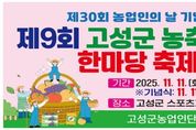 [참좋은뉴스= 기자] 고성군은 11월 11일부터 12일까지 고성군스포츠타운 4구장에서 ‘제30회 농업인의 날 기념, 제9회 고성군 농축산물 한마당 축제’를 개최한다. 고성군농업인단체협의회가 주관하고 고성군이 후원하는 이번 행사는 농업인의 긍지와 자부심을 높이고, 지역 농축산물의 소비를 촉진하기 위해 마련됐다. 축제는 기념식과 축하공연, 농축산물 홍보 및 판매, 무료시식회, 전시·체험 행사, 귀농귀촌·청년농업인·고향사랑기부제 홍보 등으로 구성된다. 첫째 날인 11월 11일 오전 10시부터 농축산물 직거래장터와 전시행사가 열리며, 오전 10시 30분에는 여성농민회의 오카리나 연주와 퓨전국악 ‘화온’의 식전공연으로 축제의 막을 열고, 오전 11시에는 기념식이 진행된다. 기념식에서는 내빈소개, 개회선언, 국민의례, 유공자 시상(군수 2명, 의장 2명, NH농협고성군지부장 1명, 감사패 2명) 등이 이어지며, 기념사와 축사 후에는 ‘고성에는 고성쌀 강정’ 농업인의 날 축하 퍼포먼스가 진행될 예정이다. 오후에는 맥주 빨리마시기 이벤트를 시작으로 트로트가수 한아름, 윤이나, 서백의 무대와 생활개선