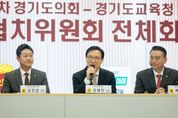 [참좋은뉴스= 기자] 경기도교육청과 경기도의회가 2026년도 본예산 편성 과정에서 총 2,000억 원 규모의 협치 예산을 공동으로 추진하기로 합의하며 교육 협력의 새로운 전기를 열었다. 경기도교육청은 5일 도의회 예담채에서 ‘경기도의회-경기도교육청 제1차 여야정 협치위원회 전체회의’를 개최했다. 이번 회의는 도의회와 교육청이 함께 2026년도 협치 예산 합의문에 서명하며 지속 가능한 교육정책 협력체계를 공고히 하고자 마련됐다. 공동의장 3인은 합의문에 서명하며 교육청과 도의회 간 협치의지를 공식화했다. 합의를 통해 ▲현장 중심 학교운영 ▲교육행정 개선 ▲미래교육 전환 ▲교육환경 개선 ▲맞춤형 교육확대 등 5대 분야 총 2,000억 원 규모 협치 예산을 공동 추진하기로 했다. 임태희 교육감은 인사 말씀을 통해 “여야정 협의가 늘 화두로 떠오르는데 실제로 결실은 많치 않다”며 “이런 점에서 대단히 성숙하고 건강한 도정의 협치 모습을 보이는 현장이라고 생각한다”고 말했다. 이어 “최종적으로 학생과 교육 현장의 학부모, 교직원들을 위해 앞으로 후속 조치를 함께 해주시길 바란다”며