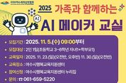 [참좋은뉴스= 기자] 여수시는 관내 초등학교 3~6학년 학생과 학부모가 함께 참여하는 ‘2025년 가족과 함께하는 AI 메이커 교실’ 참여자를 11월 5일부터 모집한다. 이번 프로그램은 부모와 자녀가 함께 AI 기반 도구를 활용한 창작 활동을 체험하며 미래 사회에 필요한 기술 감수성과 창의적 사고력을 기르고 가족 간 협력과 소통을 강화하기 위해 마련됐다. 모집 인원은 학생 1명과 학부모 1명으로 구성된 2인 1팀 총 30팀(60명)이며 참여를 희망하는 가족은 여수시행복교육지원센터 누리집에서 신청할 수 있다. 다문화가정은 전남동부이민외국인지원센터 추천으로 참여 가능하다. 교육은 11월 23일 오전·오후반과 11월 30일 오전반으로 나누어 진행되며 주요 활동은 ▲제미나이(Gemini)를 활용한 스토리북 제작 ▲제미나이(Gemini)·구글·AI 스튜디오를 활용한 이모티콘 및 가족 피규어 제작 ▲그로크(Grok)를 활용한 ‘내가 그린 그림’으로 동영상 만들기 등으로 구성된다. 여수시 관계자는 “가족이 함께 즐기는 체험 프로그램을 통해 AI 기술을 보다 쉽고 친근하게 접하고 아이들의 호기심과