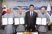 [참좋은뉴스= 기자] 삼척시는 11월 28일 시장 집무실에서 신규 지정된 도지정 문화유산의 지정서 전달식을 진행했다. 지난 11월 21일 ‘삼척 영은사 석조비로자나삼불좌상’, ‘삼척 신흥사 석조석가여래삼존좌상’이 유형문화유산으로, ‘삼척 감로사 원당도’가 문화유산자료로 각각 지정됐다. [뉴스출처 : 강원도 삼척시]
