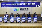 [참좋은뉴스= 기자] 경남연구원은 11일 경남연구원 1층 가야대회의실에서 경남의 정체성 확립과 미래 발전 전략 모색을 위한 학문적 논의의 장인 「2025 경남학 포럼」을 개최했다고 밝혔다. ‘경남학의 미래 가치와 실천 방안’을 대주제로 열린 이번 포럼은 도내 4개 대학(경상국립대, 국립창원대, 인제대, 경남대)의 후원으로 진행됐으며, 70여 명의 전문가, 도민, 관계 공무원 등이 참석해 경남학에 대한 높은 관심을 보여주었다. 오동호 경남연구원장은 개회사에서 "이번 포럼은 경남학포럼의 역사적인 첫 출범"임을 강조하며, “경남학은 경남의 정체성 확립과 미래 비전 설계를 위한 든든한 지적 토대로서, 경남연구원이 ‘경남학 연구의 산실이자 플랫폼’으로 도약하는 중요한 이정표가 될 것이다”라고 말했다. 김기영 경상남도 기획조정실장은 “경남학은 도민의 삶과 지역의 가치를 규명하고 정책·문화 영역에서 활용할 중요한 자산”이라며, “도정 또한 경남학이 지역의 미래전략으로 자리매김할 수 있도록 연구 기반 확충과 정책 개발을 적극 지원하겠다”고 밝혔다. 백태현 경상남도의회 기획행정위원장은 “경남학은 과거 성찰과 미래