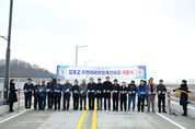 [참좋은뉴스= 기자] 김천시는 2025년 12월 11일, 감포교 자연재해위험지구 정비사업이 마무리 단계에 접어들며 도의원 및 시의원, 지역주민 등 170여 명이 참석한 가운데 신설 감포교 개통을 기념하는 테이프 커팅식을 가졌다. 감포교는 감문면 태촌리~아포읍 의리를 연결하는 30년 이상 된 노후 교량으로, 홍수 시 제방 및 호안 유실 위험이 높을 뿐 아니라 교량 내 인도 미설치로 통행에 많은 불편함이 있어 교량 신설의 필요성이 꾸준히 제기돼 왔다. 이에 시에서는 재해예방사업 추진을 위해 국회의원 등과 합심하여 국·도비 확보에 나섰으며, 2019년 9월 행정안전부 공모사업인 ‘감포교 자연재해위험개선지구’에 선정되는 성과를 거두었다. 이후 같은 해 11월 실시설계용역에 착수한 후, 2022년 6월 감포교 자연재해위험개선지구 정비사업을 본격적으로 착공했다. 본 사업은 노후 교량인 감포교를 철거 및 신설하는 사업으로 총사업비 295억 원이 투입됐으며, 전체 도로 개설 구간은 총 848m에 이른다. 이 중 새로 건설되는 교량은 연장 568m, 폭 12m의 규모이며 기존 교량에는 없던 보행자