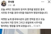 [참좋은뉴스= 기자] 경주시는 주낙영 경주시장이 30일 오후 APEC(아시아·태평양경제협력체) 정상회의 참석차 경주를 방문한 시진핑 중국 국가주석을 공식 영접했다고 밝혔다. 주낙영 시장은 이날 코오롱호텔 로비에서 경주시민을 대표해 시진핑 주석을 직접 맞이하고 꽃다발을 전달했다. 주 시장은 “천년 고도 경주는 이제 문화와 국제회의가 공존하는 도시로 성장하고 있다”며 “이번 APEC을 계기로 한중 간 우호 증진은 물론, 아시아 각국과의 협력 관계를 강화하는 출발점이 되길 바란다”고 환영 인사를 전했다. 시진핑 주석은 “16년 만에 다시 경주를 찾게 돼 감회가 새롭다. 지난 방문의 따뜻한 환대를 기억한다”며 “천년의 역사와 문화를 품은 경주에서 APEC 정상회의가 열리는 것은 매우 뜻깊은 일”이라고 화답했다. 이번 영접 행사는 APEC 정상회의 주요 일정의 하나로, 경주의 역사·문화적 품격을 국제사회에 알리고 세계 각국 정상들에게 ‘환대의 도시’ 이미지를 각인시키는 계기가 됐다는 평가다. 한편, 경주는 APEC 정상회의 기간 대표단의 방문이 이어지며 세계 속 문화·관광 중심도시로 주목받고
