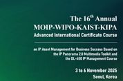 [참좋은뉴스= 기자] 지식재산처는 세계지식재산기구(WIPO) 및 한국발명진흥회(KIPA)와 공동으로 11월 3일~ 6일까지 한국지식재산센터(서울 강남구)에서 '국제 지식재산 전문가 인증과정(AICC)'을 개최한다. 올해는 지식재산처·WIPO·KIPA가 공동 개발한 지식재산(IP) 비즈니스 교육 e러닝 콘텐츠인 IP 파노라마 2.0을 활용해 온라인 과정을 수료한 119개국 1,364명 중 23개국 35명의 우수 학습자를 최종 선발해 서울에서 오프라인으로 심화 교육을 진행한다. 이번 교육을 통하여 세계 각국의 지식재산 전문가들이 지식재산 경영 및 활용 전략을 수립하는데 도움을 받을 수 있을 것으로 기대된다. 이번 오프라인 교육 과정은 국제 비즈니스 경영 측면에서 지식재산의 효과적인 활용과 관련된 ▲ 지식재산(IP) 가치 평가 및 금융 ▲ 인공지능(AI) 등 최신 IP 동향 ▲ 특허등급 평가 및 활용 사례 ▲ IP 면허 전략 ▲ IP 면허 협상을 위한 실습 등으로 구성됐다. 특히, 창업초기기업ㆍ개척기업을 위한 IP 경영전략 수립 방법, 분쟁 대응전략 등의 내용도 포함되어 있어 경영 실무역량 배양에 도움이 될 것으로 기대된다.