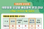 [참좋은뉴스= 기자] 울산 동구가 2026년 1월 1일부터 월요일, 목요일의 재활용품 수거 품목을 변경 시행한다고 밝혔다. 지금까지는 월요일, 목요일은 기타 재활용품, 화요일은 스티로폼·공병, 수요일은 비닐, 금요일은 투명 페트병을 수거하고 있다. 2026년 1월 1일부터는 월요일은 기타 재활용품에서 종이류로, 목요일은 기타 재활용품에서 플라스틱 및 캔·고철로 변경되며 나머지 화요일, 수요일, 금요일은 현행 품목을 그대로 유지할 예정이다. 배출 시간은 수거일 전날 저녁 8시부터 자정 12시까지이며 내 집 앞에 배출해야 한다. 기존 수거 체계상 ‘기타 재활용품’이란 용어가 주민들의 해석에 혼란을 초래하여 재활용 전 품목 혼합 배출의 문제가 꾸준히 제기되어왔으며, 또한 월요일은 재활용품 배출량이 많아 현장에서 근무하는 근로자들의 인력적 한계로 재활용품이 미수거되는 등의 민원이 지속적으로 발생했다. 동구청은 이달부터 변경된 체계의 조기 정착과 주민들의 혼란 방지를 위해 현수막, 전단지 등을 활용해 주민들에게 적극 알리고, 구청 홈페이지를 비롯해 소식지, 구청 SNS를 통해서도 집중적인 홍보