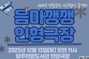 [참좋은뉴스= 기자] 양주희망도서관이 오는 13일 도서관 내 희망극장에서 국악 사물놀이를 기반으로 한 인형극 '음마깽깽 인형극장'을 운영한다. '음마깽깽 인형극장'은 연말을 맞아 한 해를 마무리 할 수 있는 주제로 ‘수고했어, 올해도’로 기획됐다. 지난달 29일 약 80여 명의 관객과 함께한 천 개의 캔들 음악회에 이은 두 번째 시간이다. 특히 이번 공연은 경기아트센터의 “찾아가는 문화복지공연” 사업으로 지역 시민들에게 수준 높은 문화예술 향유의 기회를 제공하고자 마련됐다. 본 공연을 펼쳐 줄 ‘음마깽깽 연희극장’팀은 국가중요무형문화재로 지정된 전통 인형극인 ‘덜미’를 중심으로 국악과 인형극을 접목하여, 국내 유일한 남사당놀이 극을 진행하는 팀이다. 이번 공연은 3가지 막으로 구성된 옴니버스 형식의 인형극으로 펼쳐진다. 관람 신청은 도서관 누리집에서 선착순으로 가능하며, 양주시민이면 누구나 무료로 관람할 수 있다. 도서관 관계자는 “연말을 맞아 도서관에서 함께하는 공연을 통해 올해 고생한 서로를 위로하며 한 해를 잘 마무리하는 시간이 되길 기대한다”고 전했다. [뉴스출처 : 경기도 양주시]