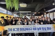 [참좋은뉴스= 기자] 경상북도청송교육지원청은 12월 9일에 2025년을 마무리하고 직원들의 화합과 소통을 위해 2026년을 준비하고자 교육지원청 및 청송도서관 직원이 함께 특수분야 직무연수 기관으로 지정된 안동시의 카페에서 바리스타 연수를 실시했다. 이날 연수는 2018년부터 교육지원청 특수분야 직무연수 바리스타 연수를 운영하는 곳에서 진행됐다. 핸드드립의 이해, 커피 기구 설명, 커피 추출 방식을 배우고 사이폰 커피와 아포카토 만들기, 반자동 머신 커피 추출, 에스프레소 라떼 만들기 등의 여러 종류의 실습을 했다. 이날 커피 만들기 실습에서는 국가별 커피의 종류와 특징에 대해서 상세히 알게 됐고, 원두의 로스팅 방식과 블렌디드 방식에 따라 커피 향을 조절하는 방법을 알게 되어 일상생활에 도움이 되는 지식을 터득하고 직원 간 공동의 주제로 화합을 한 시간이 됐다. 특히 이날 연수에서 배운 내용을 사무실에 비치된 커피머신 뿐 아니라 가정에서도 적용할 수 있어 일부 직원은 아침에 더 맛있는 커피를 만들 수 있게 됐다며 연수 내용에 매우 만족해 하는 모습이었다. 교육지원청 교육지원과, 행정지원과, 도서관 직원들은