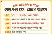 [참좋은뉴스= 기자] 김해시보건소는 자살예방과 생명존중 문화 확산을 위해 오는 10일부터 13일까지 4일간 워크온 앱을 활용한 ‘생명사랑 걷기 워크온 챌린지’를 진행한다고 9일 밝혔다. 이번 챌린지는 워크온 앱 내 김해시 공식 커뮤니티인 ‘건강도시 김해’ 건강걷기 공식 커뮤니티 회원이라면 누구나 참여할 수 있으며 4일 동안 총 2만8,000보를 걸으면 된다. 하루 최대 인정 걸음 수는 1만보로 제한된다. 참여를 희망하는 시민은 챌린지 시작일인 10일부터 ‘참여하기’ 버튼을 눌러 참여할 수 있다. 걸음 수를 달성한 이용자는 워크온 앱 내 리워드에서 ‘응모하기’를 누르면 자동으로 추첨에 참여할 수 있다. 김해시보건소는 응모자 중 무작위 추첨으로 소정의 선물을 지급한다. 당첨자는 이달 16일 커뮤니티 공지사항 또는 앱 내 쿠폰 보관함에서 확인할 수 있으며 상품은 12월 23일 내 지급한다. 보건소 관계자는 “걷기만으로 누구나 쉽게 참여할 수 있는 프로그램인 만큼 많은 시민들의 관심과 참여를 바란다”고 말했다. 보다 자세한 사항은 김해시보건소 건강증진과로 문의하면 된