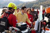 [참좋은뉴스= 기자] 이재명 대통령은 6일 오후 강원도를 방문해 관·군의 산불 진화 장비와 대응체계를 점검한 뒤, 동해안 산불 위험 지역을 시찰했다. 이 대통령은 취임 직후부터 관계기관에 가용 가능한 자원을 총동원하는 등 강력한 산불 진압 초기 대응체계를 마련하라고 거듭 지시해 왔다. 이번 방문은 이러한 대통령 지시사항의 이행 상황을 직접 점검하기 위해 실시된 것이다. 이 대통령은 먼저 강원 원주시에 위치한 산림청 산림항공본부를 찾아 산림청과 군(軍)의 산불 진화 헬기, 드론, 차량 등 핵심 장비를 점검했다. 현장을 둘러본 이 대통령은 "산불이 발생했을 때 초기에 신속하게 대응할 수 있도록 현장의 1차 책임을 명확히 하라"고 지시했다. 또한 "산불 대응 관련 예산과 사업은 국민이 납득할 수 있도록 투명하고 효율적으로 운영하라"고 말하면서도, "산불 대응에 있어서는 '아깝다'고 생각하지 말고 초기부터 전력으로 대응하라"고 당부했다. 이어 이 대통령은 산림청과 국방부의 ‘산불 진화 합동훈련’을 참관했다. 훈련은 헬기 레펠을 이용한 공중 진화, 드론을 활용한 정밀 진화, 헬기 물 투하 등의 순서로 진행
