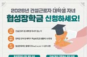 [참좋은뉴스= 기자] 건설근로자공제회(이사장 직무대행 권혁태)와 협성문화재단(이사장 박석귀)은 건설근로자의 대학생 자녀 학업 지원을 위해 ‘2026년 신규 협성장학생’을 선발한다. 지원대상은 건설근로자공제회에 등록된 건설근로자로 총 적립일수가 600일 이상이고, 2025년도 근로내역은 최소 100일이다. 건설근로자의 자녀 가운데 국내 4년제 대학 신입생과 2026년 기준 2~3학년 재학생을 대상으로 장학생을 모집한다. 선발 인원은 20명 내외다. 제출서류, 심사기준은 협성문화재단 홈페이지 내 공지사항을 통해 확인할 수 있다. 접수기간은 오는 12월 15일부터 내년 1월 5일까지이며, 협성문화재단에 제출서류를 등기우편으로 제출해야 한다. 서류합격자는 2026년 1월 26일 발표되며, 면접은 2월 2일부터 6일까지 진행된다. 최종 합격자는 2월 9일 재단 홈페이지에 게시되고, 2월 12일 장학증서 수여식이 열릴 예정이다. 장학생에게는 등록금 전액과 함께 매 학기 50만원의 학습보조금이 지원된다. 또한 인문학 강의, 독서 프로그램, 해외 탐방 및 봉사 활동 등 다양한 장학 프로그램 참여 기회도 제공된다. 장학생은