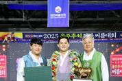 [참좋은뉴스= 기자] 증평군청 인삼씨름단(감독 연승철, 코치 서수일) 소속 이완수 선수가 울산광역시 울주군 울주종합체육관에서 열린 ‘위더스제약 2025 울주추석장사씨름대회’에서 소백장사(72kg이하) 타이틀을 거머줬다. 이완수 선수는 4일 열린 결승전에서 울주군청 소속 김덕일 선수를 접전 끝에 3-2로 제압, 개인 통산 세 번째 장사에 오르는 영예를 안았다. 이 선수는 8강에서 임주성(MG새마을금고씨름단), 4강에서 이현서(의성군청) 선수를 각각 2-1로 승리하며 결승에 진출했다. 결승전에서는 홈그라운드 이점을 안고 나온 김덕일 선수에게 초반 두 판을 내줬으나, 3판째 김 선수의 경고패로 한 점을 만회하며 분위기를 바꿨다. 이후 두 판 연속 강력한 잡채기로 상대를 넘어뜨리며 극적인 역전승을 거뒀다. 이번 우승으로 이 선수는 지난 ‘2025 설날장사씨름대회’ 소백장사에 이어 올 시즌 2관왕을 달성, 씨름 명문 증평군청 인삼씨름단의 위상을 다시 한 번 높였다. 연승철 감독은 “증평군민들에게 추석장사씨름대회에서 승리의 소식을 안겨주게 돼 매우 기쁘다”며 “이번 대회 남은 체급에서도 좋은 성
