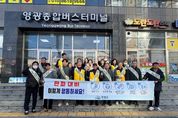 [참좋은뉴스= 기자] 영광군은 12월 15일 버스터미널 일원에서 겨울철 한파 피해 예방을 위한 홍보캠페인을 실시했다. 이번 캠페인은 안전관리과, 안전보안관 등 40명이 참여해 군민들이 겨울철 재난에서 안전하게 대응할 수 있도록 행동 요령을 안내하는 가두 캠페인을 진행했고, 겨울철 집중 신고 기간에 따라 군민들이 주변에서 발견한 위험 요소 등을‘안전신문고’에 적극 신고할 수 있도록 당부했다. 더불어, 안전보안관 회원들은 버스터미널 승객과 전통시장 및 인근 상점 상인, 방문객에게 한파 예방 홍보 물품을 전달하고, 한파 대처 방법과 건강관리 수칙을 안내하며 겨울철 건강관리의 중요성을 강조했다. 또한, 군민들의 불편사항 등을 수렴하고 예방 조치를 안내하여 안전을 도모했다. 군 관계자는“강한 한파가 지속되면 어르신들과 취약계층에 건강상의 위험이 따를 수 있어 각별한 주의가 필요하다.”라며 “이번 캠페인을 통해 한파의 심각성에 대해 경각심을 높이고, 추위로 인한 피해가 발생하지 않도록 필요한 지원을 아끼지 않겠다.”라고 전했다. [뉴스출처 : 전라남도 영광군]