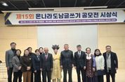 [참좋은뉴스= 기자] ‘제15회 온나라 도남글쓰기 공모전’ 시상식이 6일 오후 2시, 예천군 복합커뮤니티센터 4층 다목적홀에서 개최됐다. 한내글모임(회장 탁희찬)이 주관한 이번 행사는 글쓴이들에게 창작의 기쁨과 격려의 기회를 제공하고 문학 인구의 저변 확대를 도모하는 의미 있는 자리였다. 온나라 도남글쓰기 공모전은 전국 각지의 어린이부터 실버세대까지 다양한 세대가 참여하여 인간과 자연, 일상과 성찰의 세계를 문학으로 표현하는 뜻깊은 행사이다. 이날 시상식에서는 초등부 으뜸상에 이준서 학생(동두천초)의'휴대폰이라는 친구', 중고등부 으뜸상에 서준우 학생(대구새론중)의'휴대폰', 실버부 으뜸상에 김상문씨(광주광역시)의'사라져 간 똬리를 보며'가 선정됐다. 일반부 으뜸상에는 장수범(예천군)씨의 '삶의 급수대'라는 작품이 선정됐으며 이 작품은 자연재해 속에서도 끈끈한 인간의 연대와 공감, 그리고 생명의 불씨를 이어가는 모습을 사실적으로 그려내어 심사위원들의 큰 공감을 얻었다. 김학동 예천군수는 “이번 공모전은 글로 서로의 마음은 나누고 세상을 새로운 시각으로 바라보는 소중한 시간이 됐다”며, “앞으로도 세대와 지역