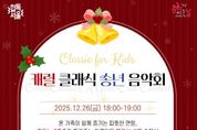 [참좋은뉴스= 기자] 서울 도봉구 도봉아이나라도서관은 오는 12월 26일 온 가족이 함께 즐길 수 있는 ‘클래식 포 키즈: 캐럴 클래식 송년 음악회’를 개최한다. 이번 음악회는 연말을 맞아 피아노, 바이올린, 첼로로 구성된 3중주가 들려주는 아름다운 캐럴 클래식 공연으로 꾸며진다. 공연은 아이들에게 친숙한 클래식, 음악 동화, 동요, 만화주제곡 등 다양한 곡들로 채워진다. 대상은 3세 이상 아이를 동반한 30가족이다. 신청은 12월 17일 오전 10시부터 도봉구 통합도서관 누리집에서 가능하다. 선착순으로 접수를 마감한다. [뉴스출처 : 서울특별시 도봉구]