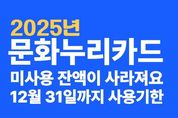 [참좋은뉴스= 기자] 광주문화재단은 2025년 문화누리카드 사용기한이 12월 31일까지이며, 미사용 지원금은 자동 소멸한다고 밝혔다. 특히 연말까지 3만 원 이상 사용하지 않을 경우, 내년 자동 재충전 대상에서 제외될 수 있어 이용자의 주의가 필요하다. 올해 문화누리카드 지원금은 1인당 14만 원으로, 도서·영화·공연·테마파크·시외버스·KTX·체육시설·스포츠 용품·스포츠 관람·캠핑용품 등 다양한 분야에서 사용할 수 있다. 문화누리카드는 지역 축제에서도 활용할 수 있다. 올해 마지막 연계 축제인 ‘빛고을 사랑나눔 김장대전’에서는 김장체험과 김치 완제품 구매 시 문화누리카드 현장 결제가 가능하도록 운영되고 있다. 축제는 12월 14일까지 매일 오전 9시부터 오후 6시까지 진행된다. (문의 062-676-3601) 문화누리카드 이용자를 위한 전액소진 이벤트도 진행된다. 올해 지원금을 모두 사용한 뒤 12월 14일까지 인증하면, 총 107명에게 CU 모바일상품권(1만 원권)을 추첨 지급한다. 이벤트 인증은 광주문화누리 카카오톡 채널을 통해 참여할 수 있다. 한편, 문화누리카드 사용 가능 가맹점은 문화누리카드 누리집