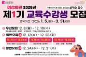 [참좋은뉴스= 기자] 부산시 여성문화회관은 오는 내일(8일)부터 '2026년 제1기 문화교실' 수강생을 모집한다고 밝혔다. '여성문화회관 문화교실'은 우수한 강사진을 토대로 시민의 다양한 문화 욕구에 부합하는 배움의 장을 제공하는 평생교육 프로그램이다. 시민들에게 전문적인 능력개발과 삶의 질 향상을 위한 폭넓은 기회를 제공하고자 시 여성문화회관이 운영하고 있다. 2026년 제1기 문화교실은 내년 1월 2일부터 3월 28일까지 11주간 진행되며, 전통·어학·요리·예술·현대생활 5개 분야 97개 강좌에서 1,913명의 수강생을 모집할 예정이다. 이번 교육 과정에는 전통 분야를 비롯한 다양한 문화예술 강좌와 취·창업 등에 도움이 되는 자격증 강좌, 직장인을 위한 야간·주말 강좌가 운영될 예정이다. ▲문화예술 강좌로는 가야금, 기타, 꽃꽂이 등이 있으며 ▲자격증 강좌로는 제빵(베이킹), 컴퓨터 자격증 과정 등이 있다. 또한, ▲야간에 운영되는 필라테스․요가, 커피 바리스타 과정, 사진예술 등의 강좌 ▲주말 과정인 전통주·꽃차, 여행영어 과정 등도 만나볼 수 있다. 18세 이상 시