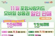 [참좋은뉴스= 기자] 포항시는 코리아 그랜드 페스티벌 기간 지역 내 소비 붐업을 위해 내달 3일부터 카드형·모바일 포항사랑상품권을 70억 원 규모로 18% 할인판매를 시작한다. 코리아 그랜드 페스티벌은 이달 29일부터 내달 9일까지 12일간 개최되는 국가 차원의 통합 할인 행사로 제조·유통과 전통시장, 소상공인 업계가 참여한다. 이번 포항사랑카드 특별할인 판매는 기존 할인 혜택 13%에 5%를 추가해 총 18% 할인 혜택이 적용되며, 국비를 추가 확보해 코리아 그랜드 페스티벌과 연계로 진행하는 행사로 지역 내 소비 활성화에 기여할 것으로 기대하고 있다. 또한 시는 내달 3일부터 시작하는 포항사랑카드 70억 원 규모의 18% 할인판매에 이어 내달 10일부터는 180억 원 규모로 13% 할인판매 등 11월에 총 250억 원을 발행해 실질적인 소비 촉진으로 지역 상권 회복과 지역경제 선순환을 이어가겠다는 방침이다. 이번 포항사랑카드 18% 특별 할인판매의 개인 구매 한도는 10만 원이며, 보유 한도는 100만 원이다. 오는 11월 3일 0시 15분부터 모바일 앱(iM샵)에서 충전할 수 있으며, 104개