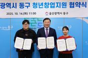 [참좋은뉴스= 기자] 울산 동구는 10월 14일 오전 11시 동구청에서 ‘2025년 청년창업 Start Up' 선정자인 ’모아라면땅‘ 김보예 대표와 ’보컬라운지 실용음악학원‘ 이형도 대표를 대상으로 창업지원금 지원 협약식을 개최했다. ‘청년창업 지원사업’은 청년 창업자의 발굴 및 육성하고자 맞춤형 컨설팅과 교육, 창업자금 등을 지원해 청년들의 안정적인 창업 기반을 구축하기 위한 사업이다. 지난 5월 참가자를 모집해 8월에는 교육 및 컨설팅 과정을 진행했으며, 최종 보고회를 통해 2명의 청년 창업자를 선정했다. 이번 협약을 통해 1위로 선정된 김보예 대표(모아라면땅)와 2위 이형도 대표(보컬라운지 실용음악학원)는 창업지원금을 지원받게 되며, 창업 아이템을 활용한 사회공헌활동도 함께 추진할 예정이다. ‘모아라면땅’은 오븐에 구은 라면땅을 수제로 만들어 판매하는 사업을 하며, 보컬라운지 실용음악학원은 보컬 레슨과 문화예술 공연을 제작하는 사업을 한다. 김종훈 동구청장은 “많은 청년 창업자들이 동구에 정착하여 골목상권 활성화와 지역 경제 발전에 기여하기를 바란다”라며 “앞으로도 청년들의 창업 도전과 성장을 위한 다양