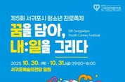 [참좋은뉴스= 기자] 서귀포시, 서귀포시교육지원청, (재)서귀포시교육발전기금 공동주최로 10월 30일부터 10월 31일까지 서귀포예술의전당 일원에서 지역 청소년들의 진로 탐색을 지원하는 ‘제5회 서귀포시 청소년 진로축제(부제: 꿈을 담아, 내:일을 그리다)’ 를 개최한다. 이번 진로축제는 청소년들이 자신의 꿈을 담아 내:일을 그리는 진로체험부스(탐색+체험), 진로특강, 직업인 멘토상담, 학생 동아리 공연과 작품 전시 등 다채로운 프로그램을 통해 청소년에게 주도적으로 미래를 설계할 수 있는 기회를 제공한다. 특히 학생 동아리 공연은 지난해 17팀보다 증가한 22팀이 참가하며, 진로특강도 2회로 확대 운영하고, 직업인 멘토 직업군은 12개 직업군으로 늘어(2024년 10개) 청소년들에게 더 넓은 진로 탐색의 기회를 제공한다. 본 행사는 청소년들의 관심사를 반영하여 프로그램을 풍성하게 구성했다. 개막식에는 서귀중앙여중 댄스팀‘플로렌스’, 효돈중 난타팀 ‘담팔수’팀이 축하공연을 진행할 예정이다. 진로·직업 체험부스는 총 56개 부스를 운영하며, 반려견 훈련사, 조향사, 디제잉, 로봇축구, 과