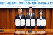 [참좋은뉴스= 기자] 울산교육연수원은 21일 밀양시청 소회의실에서 경남 밀양시, 밀양시관광협의회와 지역 자원을 활용한 현장 체험 연수 지원 등을 내용으로 하는 업무협약을 체결했다. 이번 협약은 밀양시가 보유한 교육 관광 자원을 적극 활용해 교직원의 연수 참여 기회를 확대하고 교직원의 역량을 높이고자 추진됐다. 이번 협약으로 밀양시는 주요 교육 관광 자원의 정보를 제공하고 관광협의회는 프로그램을 연계 지원한다. 울산교육연수원은 이번 협약에 따라 오는 11월 밀양시 단장면에 있는 선샤인 밀양 테마파크에서 지방공무원과 교육공무직원을 대상으로 현장 체험형 연수를 진행할 예정이다. 한현숙 원장은 “이번 협약은 교육, 문화, 관광을 통합한 연수 프로그램 운영의 토대를 마련했다는 점에서 큰 의미가 있다”라며 “앞으로도 지역 자원을 교육 제작물로 적극 활용해 연수생에게 현장 중심의 체험 기회를 제공하겠다”라고 말했다. [뉴스출처 : 울산시교육청]