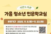 [참좋은뉴스= 기자] 부산광역시립시민도서관은 오는 11월 9일부터 23일까지 시민도서관에서 부산 지역 중학생과 학교 밖 청소년 30명을 대상으로 ‘가을 청소년 인문학 교실’을 운영한다. 이번 프로그램은 청소년들이 철학과 문학을 통해 스스로의 삶을 돌아보고, 깊이 있는 사고력과 자기 성찰의 힘을 기르도록 돕기 위해 마련됐다. 프로그램은 일상의 고민에서 철학적 질문을 찾고 생각을 확장해보는 ▲고민이 철학이 되는 시간과 헤르만 헤세의 ‘수레바퀴 아래서’를 읽고 함께 토론하며 사고해보는 ▲세계문학, 청소년을 만나다 총 2개 과정으로 구성했다. 참가 희망자는 10월 21일 오전 11시부터 30일 오후 5시까지 시민도서고나 홈페이지를 통해 선착순으로 신청하면 된다. 자세한 문의는 도서관 평생학습과로 문의하면 된다. 이은경 시민도서관장은 “이번 프로그램이 철학과 문학을 매개로 청소년들이 삶을 성찰하고 사고의 폭을 넓히는 기회가 되길 기대한다”고 전했 [뉴스출처 : 부산교육청]