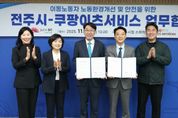 [참좋은뉴스= 기자] 전주시가 지역 배달종사자의 보호 체계를 강화하고 노동환경을 개선하기 위해 쿠팡이츠서비스와 손을 잡았다. 우범기 전주시장은 19일 전주시청에서 김명규 쿠팡이츠서비스 대표와 배달 이동노동자의 안전한 노동환경 조성과 안전 문화 확산을 위해 약속하는 업무협약을 체결했다. 이날 협약은 전주시에서 활동하는 약 2000여 명의 배달종사자가 보다 안전하고 쾌적한 환경에서 일할 수 있도록 지자체와 민간 기업이 함께 안전 지원체계를 강화하는 데 목적이 있다. 시는 쿠팡이츠서비스와 연계해 2024년~2025년에 걸쳐 이륜차 무상점검을 통해 200명의 배달종사자(1인당 10만 원 상당)에게 제동·조향장치·타이어 등 주요 장치 맞춤 점검 서비스를 추진한 바 있다. 앞으로 시는 이동종사자의 안전 확보를 위해 이륜차에 대한 무상점검을 지속·확대하고 안전교육 및 안전교육 캠페인을 반복해서 진행할 방침이다. 특히 이동노동자들이 잠시나마 더위와 추위를 피할 수 있는 안전쉼터 운영 및 확대 등 노동환경 개선을 위해 지속적으로 고민할 방침이다. 시는 이번 협약을 통해 기존 정책이 더 체계적이고 지속