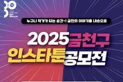 [참좋은뉴스= 기자] 금천구는 11월 7일까지 ‘2025 금천구 인스타툰 공모전’을 진행한다고 밝혔다. 이번 공모전은 금천구의 주요 사업 및 행사, 금천구에 대한 매력을 보다 친근하고 재미있게 접할 수 있도록 창의적이고 확산력 있는 홍보 콘텐츠를 발굴하고자 기획됐다. 공모 주제는 금천구를 배경‧소재로 한 것이면 무엇이든 가능하다. 주제에 맞추어 누리소통망(SNS)을 통해 간편하게 보는 만화인 ‘인스타툰’ 형식(10~15컷 이내)의 작품을 접수하면 된다. 지역‧연령에 관계없이 금천구에 관심이 있는 개인 또는 팀 단위로 누구나 공모전에 참여할 수 있다. 다만 1인(팀)당 총 2작품까지 출품할 수 있다. 작품 접수는 인스타툰 공모전 누리집에 신청서와 작품을 함께 제출하면 된다. 작품 규격 및 참가 유의사항, 신청 서식 등은 인스타툰 공모전 누리집 또는 금천구청 누리집에서 확인할 수 있다. 예비 심사와 본 심사를 거쳐 선정된 8개 작품은 12월 3일 금천구청 누리집에서 공개된다. 심사는 △스토리텔링, 창의성 등의 작품성과 △홍보 콘텐츠로서의 활용성 △재미 요소, 트렌드 반영 등 대중성을 기준