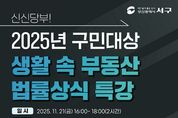 [참좋은뉴스= 기자] 부산 서구는 오는 21일 서구청 신관 4층 다목적홀에서‘신신당부! 2025년 구민대상 생활 속 부동산 법률상식 특강’을 개최한다고 밝혔다. 이번 특강은 임대차 계약 관련 정보와 필수 법률 상식을 제공해 전세사기 피해를 예방하기 위해 마련됐다. 강사는 법무법인 거산의 판사 출신인 신중권 변호사로 조직적 전세사기 범행(2019년‘화곡동 전세사기’사건)의 고소 대리를 전국 최초로 진행한 이력이 있으며, JTBC '손 없는 날', MBC '다수의 수다' 등 각종 방송에도 출연하여 전세사기 피해의 심각성과 예방법을 알린 바 있다. 신 변호사는 ▲전세사기 사례 및 대처 방법 ▲임대차 계약 시 주의사항 및 필수 특약사항 ▲생활 속 부동산 법률 상식 등 임대차 계약 시 알아야 할 정보를 전달할 계획이다. 특강은 오후 4시부터 서구청 신관 4층 다목적홀에서 무료로 진행되며, 관심 있는 구민 누구나 사전 신청 없이 참여 가능하다. 공한수 서구청장은 "전세사기 피해를 줄이기 위해서는 주민들도 올바른 임대차 계약과 부동산 법률 상식에 대한 정보를 숙지하는 것이 중요하기 때문에 이번 특