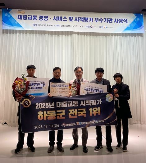 [참좋은뉴스= 기자] 하동군은 지난 19일 서울 그랜드힐컨벤션에서 열린 ‘2025년 대중교통 시책평가 시상식’에서 전국 76개 군 단위 지방자치단체 가운데 종합 1위를 차지하며 국토교통부 장관상을 수상했다.