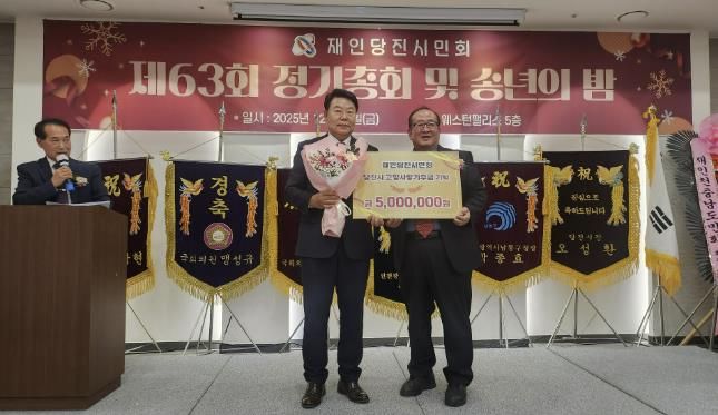 [참좋은뉴스= 기자] 당진시는 재인당진시민회가 12월 19일 인천광역시 부평구 웨스턴팰리스에서 열린 재인당진시민회 제63회 정기총회 및 송년회에서 고향사랑기부금 500만 원을 당진시에 기탁했다고 밝혔다.
