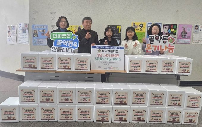 [참좋은뉴스= 기자] 성황초등학교가 지난 19일, 광양시 골약동지역사회보장협의체(공공위원장 박순옥, 민간위원장 정용태)에 학교 나눔 장터 수익금과 김장김치 30박스를 기탁하며 이웃사랑을 실천했다.