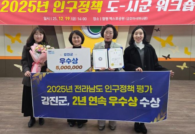 [참좋은뉴스= 기자] 강진군이 전라남도가 실시한 2025년 인구정책 우수 시·군 평가에서 ‘우수상’을 수상했다.