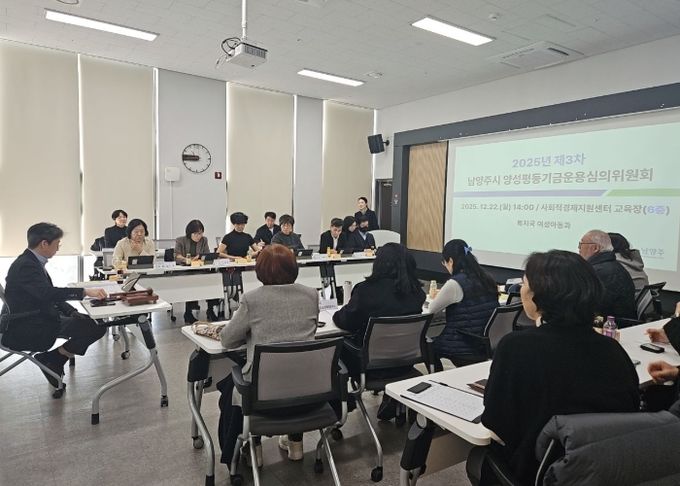 [참좋은뉴스= 기자] 남양주시는 22일 남양주사회적경제지원센터에서 ‘2025년 제3차 남양주시 양성평등기금운용심의위원회 및 성과공유회’를 개최하고, 올해 추진한 양성평등기금 지원사업의 성과를 공유하며 2026년도 사업방향을 논의했다고 밝혔다.